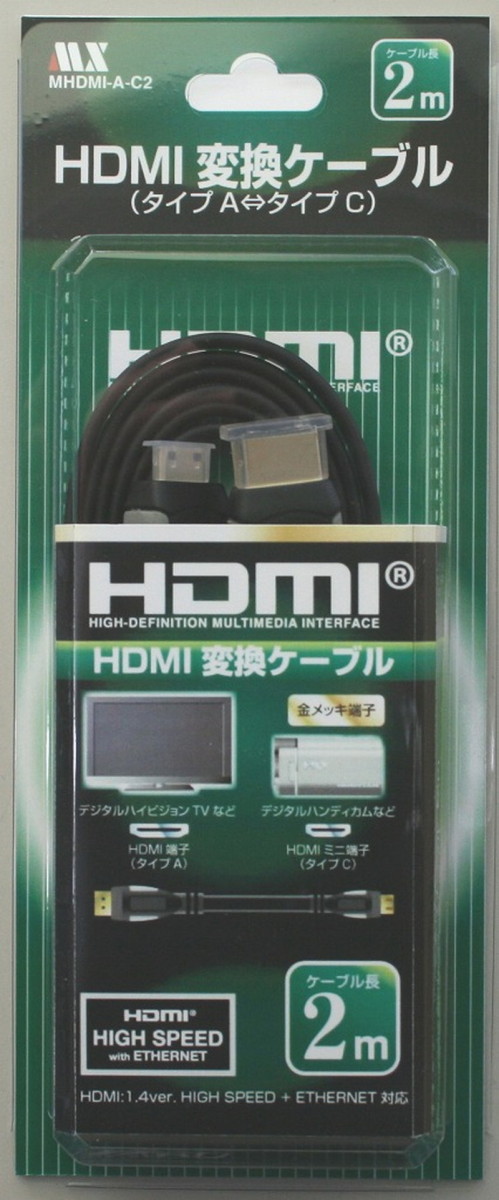 HDMIを A タイプ から C タイプ ヘ 変換 HDMI 変換ケーブル 2m ver1.4 小型プレーヤー カメラ等 HDMI Cタイプ端子付き機器との接続に