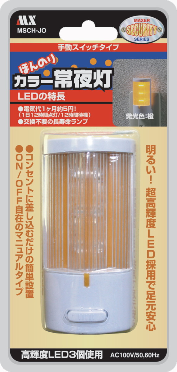 明るすぎない やわらかな光 ほんのり カラー常夜灯 スイッチタイプ オレンジ プッシュスイッチで確実にON/OFFできます。