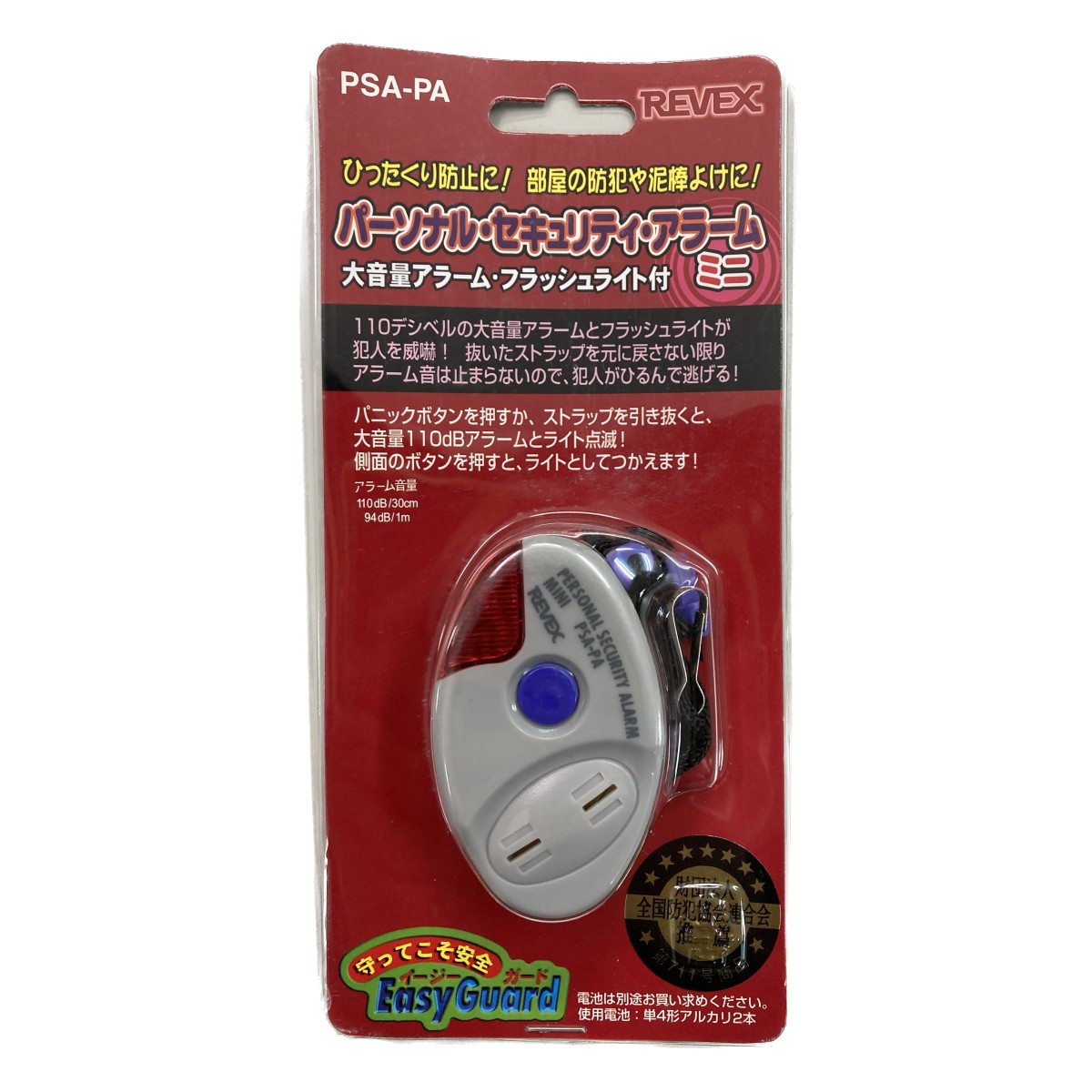 パーソナルセキュリティアラーム ミニ 大音量アラーム フラッシュライト付き REVEX PSA-PA