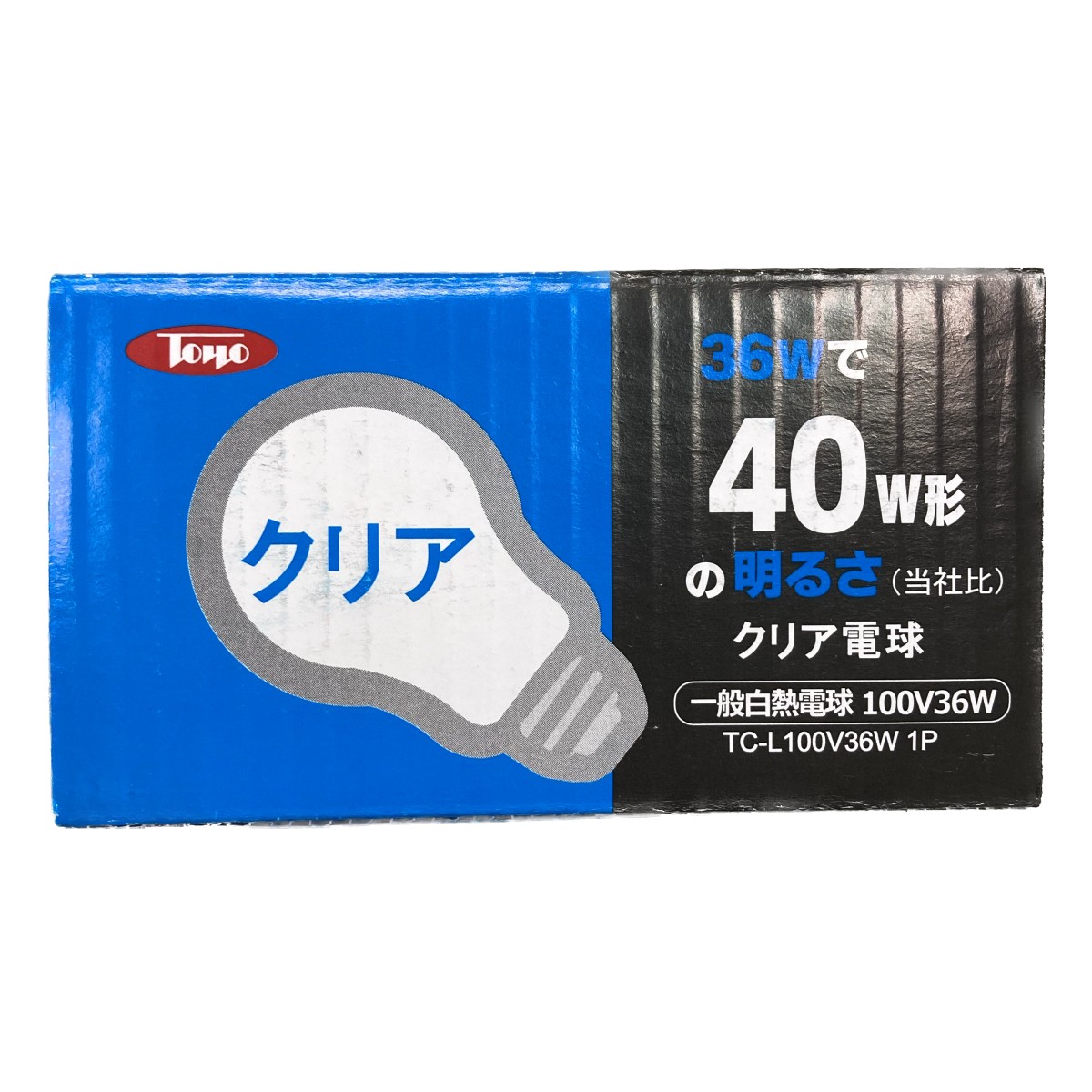 白熱 電球 40W形 1個 クリア 東洋ライテック TC-L100V36W1P