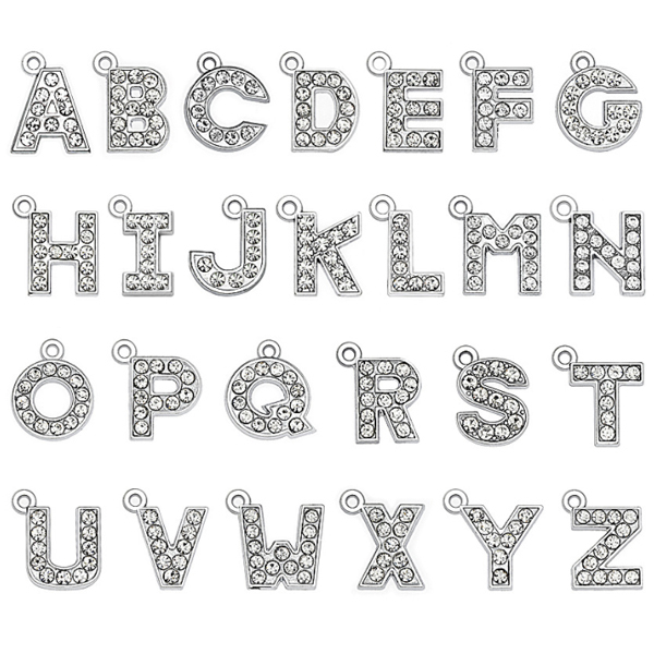 きらきら光るラインストーンが入ったアルファベットチャーム