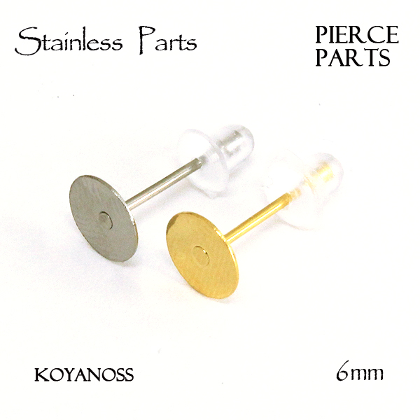 ステンレス スタッドピアス 平皿6mm シリコンキャッチ付 5ペア(10個) ステンレス製パーツ ポストピアス 134