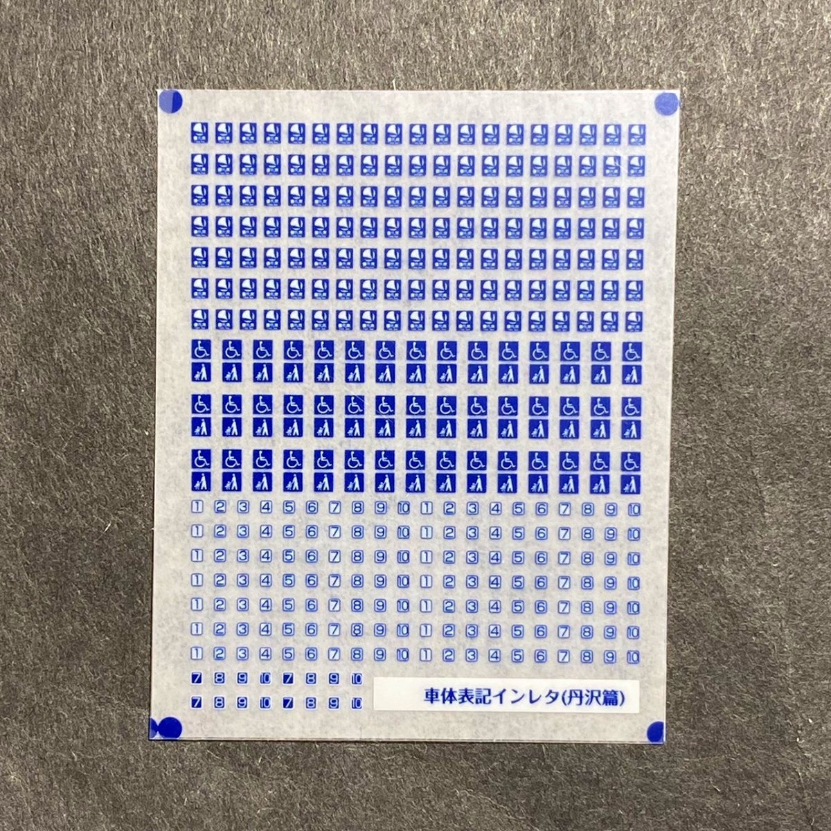 優先席表示や車いす・ベビーカー表記、号車表記などを収録したNゲージ(1/150スケール)用インレタです。