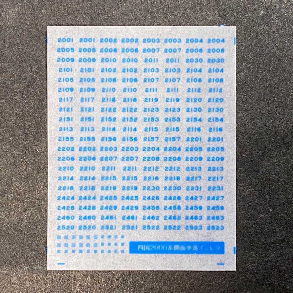 四国2000系特急側面車番インレタ(1)(Nゲージ)