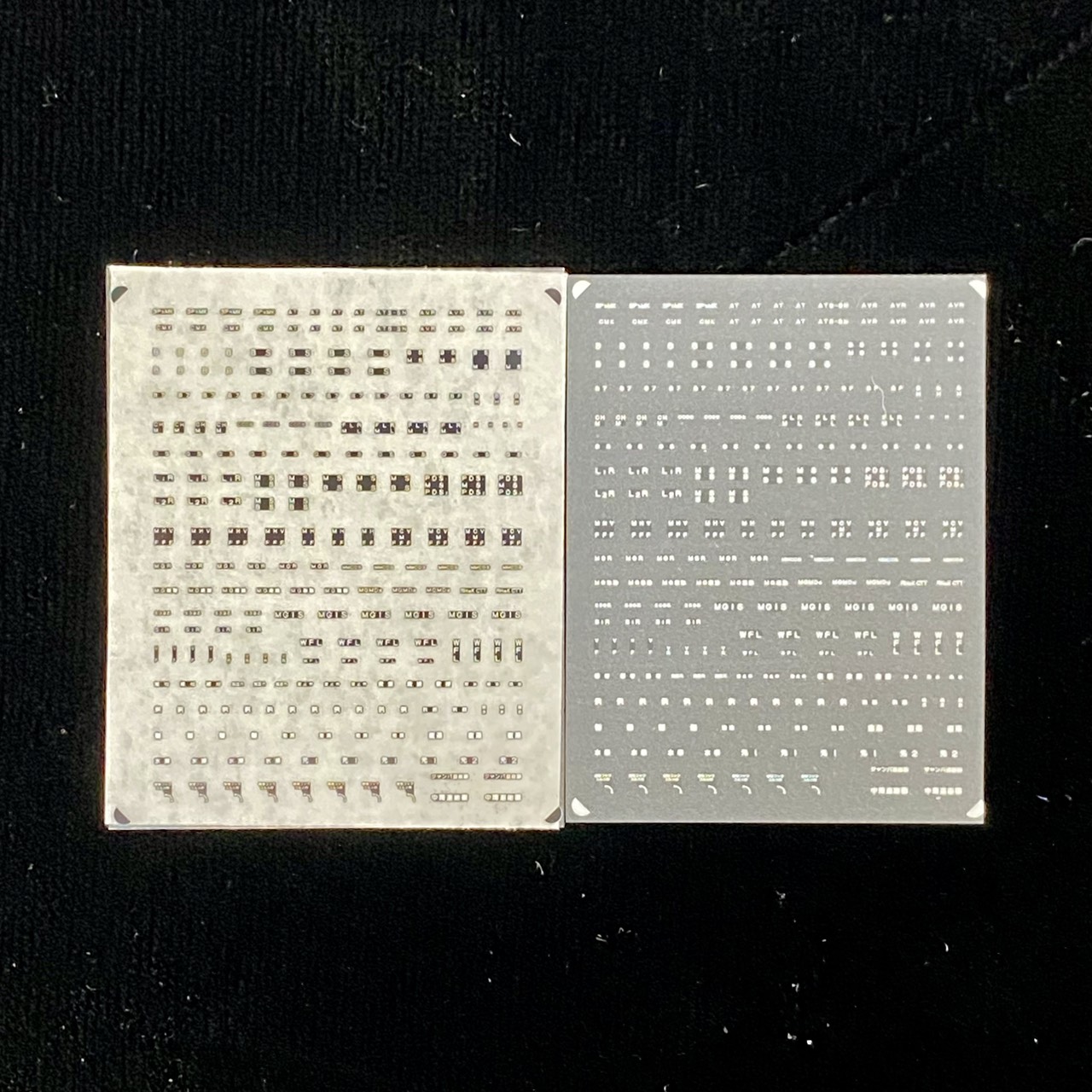 ※必要分を必ず切って転写して下さい※単色刷りのインレタです。必ずノンアルコールのウェットティッシュ等を用いて表面の脂を落としてから転写し、裏紙をあててしっかり密着させ、クリアコーティングしてください。