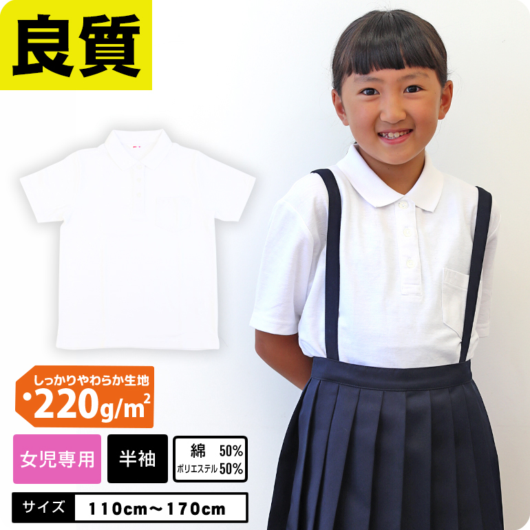 【女の子専用ベーシックポロ】 しっかりやわらか生地 ポロシャツ キッズ 白 小学生 制服 半袖 スクールポロシャツ 通学 小学生 学校用 小学生 入学