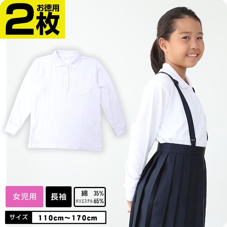 女の子 長袖 ポロシャツ 白 小学校 小学生 スクール ポロ キッズ 入学式 卒業式 吸汗速乾 お得2枚