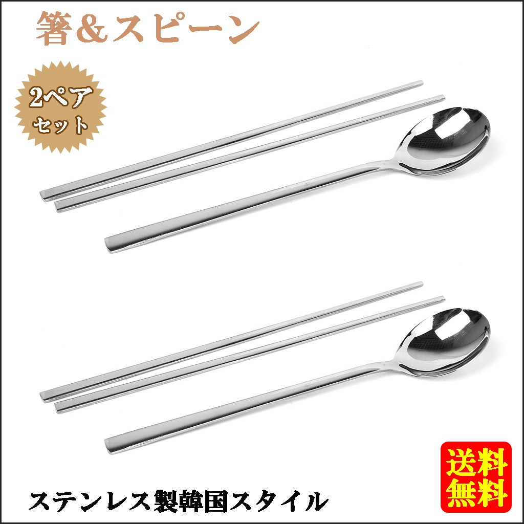 食器 セット 箸 スプーン はし ステンレス鋼 韓国風 ポータブル キャンプ 2本セット