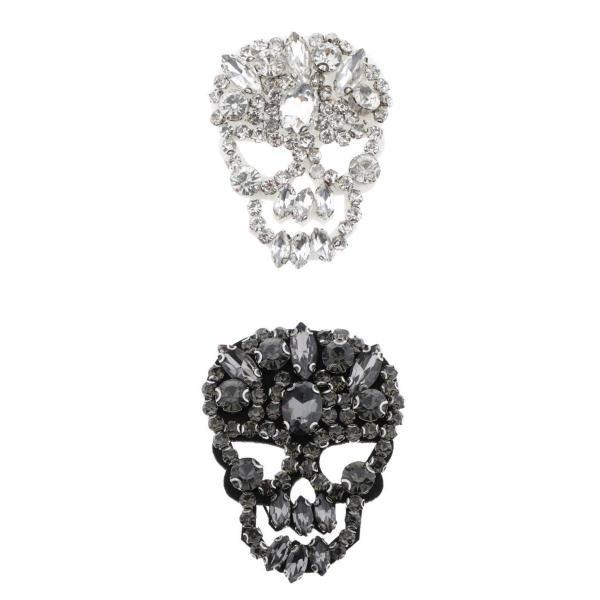 2xスカルヘッド型ラインストーンアップリケパッチDIYソーイング装飾