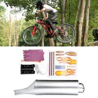 エキゾーストパイプはマウンティングブラケットで自転車のリアフレームに取り付けられています.エキゾーストのベースとスポークの間にあるプラスチック製のサウンドカードがバイクの大きな音を出します.