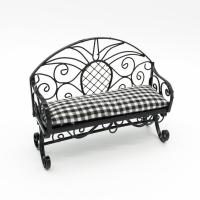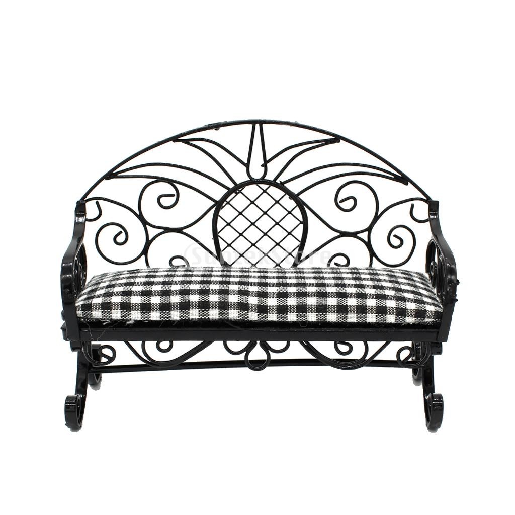 ヴィンテージスタイルの人形の家ミニチュア家具二人掛けの鉄のソファの椅子のソファのベンチの人形館の屋外ガーデンの装飾、リビングルームのアクセサリー子供たちの子供たちは人形の家を飾るためのおもちゃのふりをするサイズ(LxWxH):10.5x3.8x8cm / 4.13x1.5x3.15インチ材質:金属+布カラー:ブラック