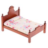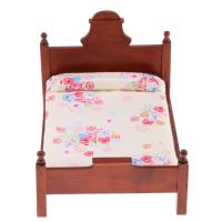 花柄のドールハウスミニチュア家具ダブルベッドよく設計され、細工された;モダンでスタイリッシュでおしゃれなあなたの人形の家の寝室の装飾のための素晴らしいアクセサリー 1/12スケールのドールハウスに適しています材質:ローズウッド茶色