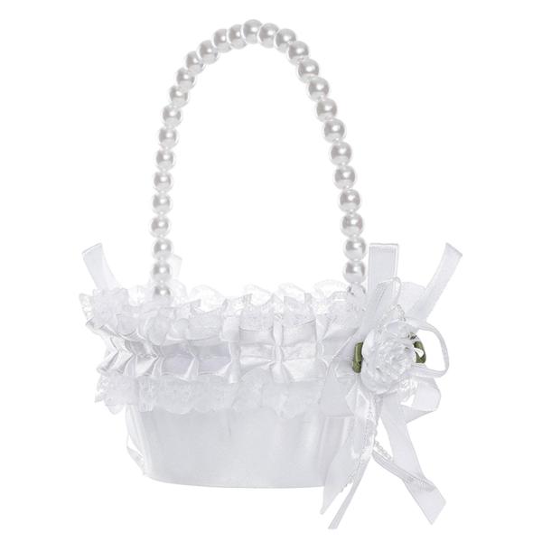 サテンフラワーバスケット ウェディング用品 装飾 パール付き ウェディングフラワーバスケット 12cmx18cm