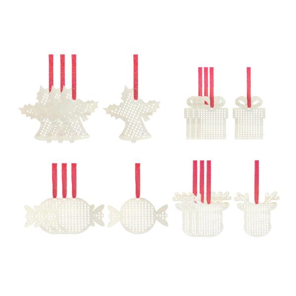 木製ピース16個(ギフトボックス.鹿の頭.キャンディ.メープルリーフ)刺繍糸 16本16 ピン16 吊り紐注意: