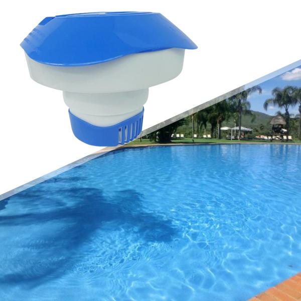 格納式の底部を備えた 8 インチのディスペンサーには.大きな塩素錠剤 (250g/個) を入れることができます.大.中.小のプール.お風呂.魚のいる池.温泉プールなどに適しています.