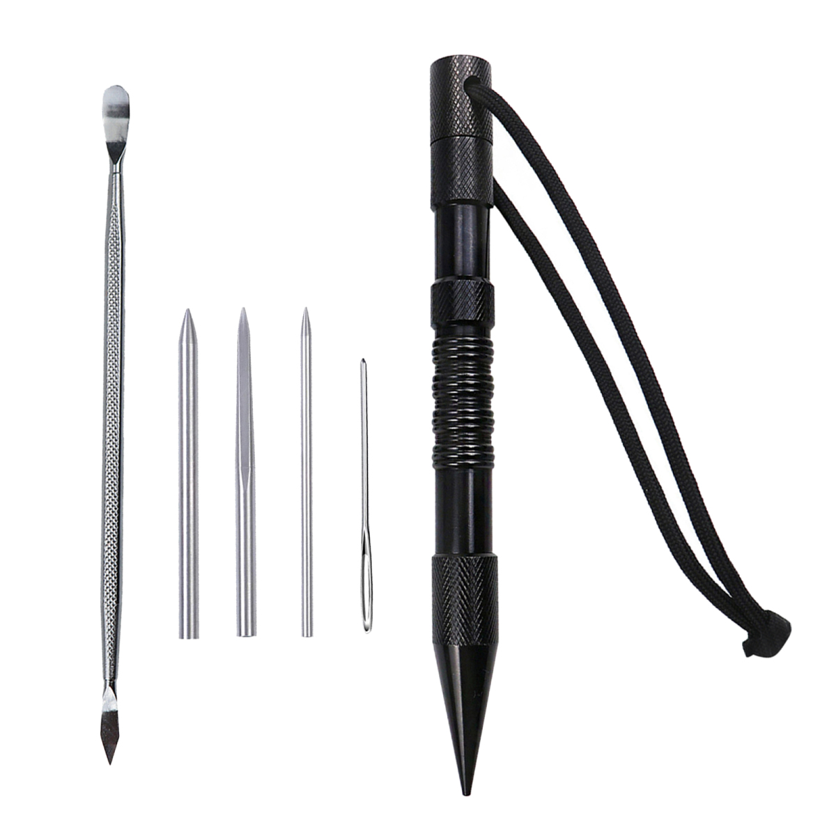 ステンレス鋼パラコードステッチ針セットスパイクフラットナー針6本黒