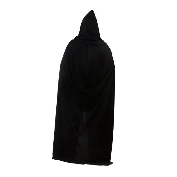 ブラックフード付きケープ、標準大人サイズケープ、1.3Mユニセックスフード付きマント、ロールプレイング、仮装パーティー、ハロウィンコスチュー