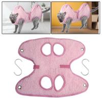 使い方は簡単:ハンモックを平らに広げ.ペットの足を手足の穴に入れ.包み.S字型のフックで吊るします.
