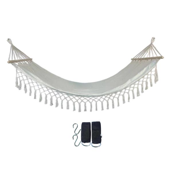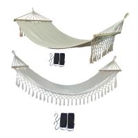 [パッケージ内容]: ハンモック1個.収納バッグ1個.取り付け簡単なタイロープ1組が付属しています. [高級生地]: ハンモックは厚手のキャンバス生地で作られており.しっかりとした感触があり.摩耗に強いです. [サイズ]: ハンモックの長さは200cm.幅は100cmで.ゆったりとくつろげるスペースがあります. [デザイン]: 複雑な編み方が施されたこのハンモックは.見た目が美しいだけでなく.安全で快適なリラックスできる場所も提供します. [用途]: 公園.ビーチ.テラス.ポーチ.庭.中庭でリラックスして楽しむのに適しています.