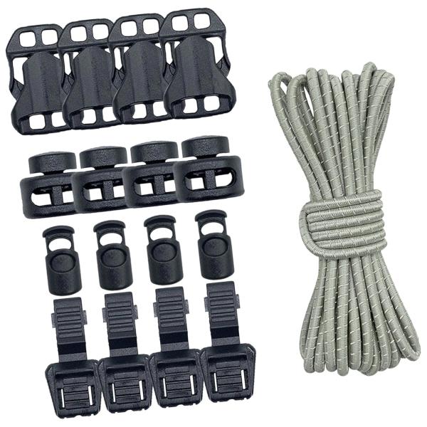 アウトドアバックパック バンジーコード 16個のコードロック付き キャンプ トレッキング 釣り用 グレー