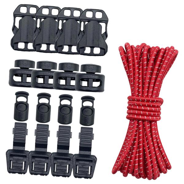 アウトドアバックパック バンジーコード 16個コードロック付き キャンプ トレッキング 釣り用 レッド