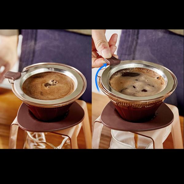フィルターカップは二重層メッシュで設計されています.これはコーヒーフィルターにコーヒー滓を残しながら.すべてのコーヒー栄養素とフレーバーオイルがより良いコーヒー味のカップを通過させるようにします.