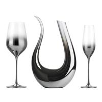ヨーロピアン スタイル クリスタル ガラス電気メッキ シルバー グレー グラデーション アメリカン赤ワイン グラス メタル ゴブレット U 字型デキャンタ ワイン セット.