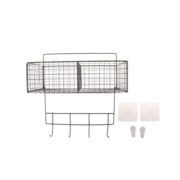 [用途]2つのグリッドとフックが付いた金属製ワイヤー壁掛けバスケット.家庭.キッチン.フルーツボックス.バスルームのバスケットに最適です.