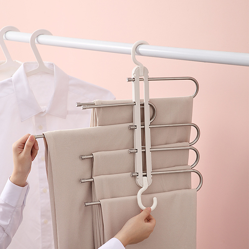 耐久性のあるステンレス鋼とPPプラスチック製で.頑丈で耐久性があります.ズボンをシワのない自然な形に保つだけでなく.同時に最大5つのパンツを保持できます.このハンガーは.スペースを節約するために水平および垂直にぶら下がるように調整できます.オープンエンドのフックデザインは.ジーンズを掛けたり外したりするのに非常に便利です.ジーンズ.パンツ.ズボン.ネクタイ.スカーフ.スラックスを整理整頓するためのクローゼットは必需品です.
