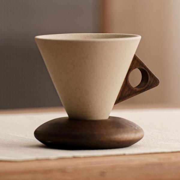 [デザイン]: 磁器のコーヒーカップは三角形の円錐形とヴィンテージな質感で.現代の都会のお茶文化に最適です. [安定したベース]: 陶器のティーカップには安定性を確保する木製のベースが付いています. [多用途]: この円錐形の磁器マグは.ミルク.コーヒー.ジュース.紅茶.カプチーノ.ラテ.水に最適です. [素材]: セラミックと木材で作られた.ベース付き漏斗コーヒーカップ. [用途]: ベース付きコーヒーマグは.家庭.オフィス.カフェ.レストランなどに最適です.