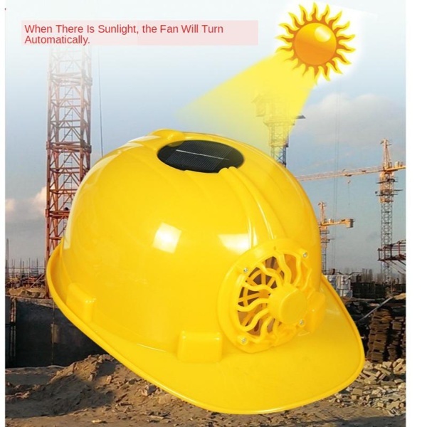 屋外安全ヘルメット用品.ソーラーファン付きABSプラスチック日焼け止めツールイエロー