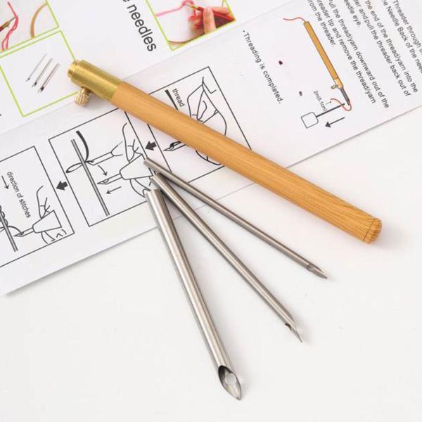 パンチ針を通してペンの上部まで糸を作り.次に針の穴を通して糸を作る必要があります.