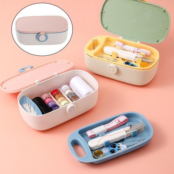 ソーイングボックスセットスレッドシザーオーガナイザーDIYソーイングキット大人用ピンク