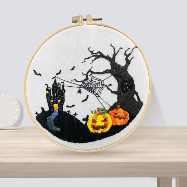 ハロウィーン クロスステッチ キット: クロスステッチ スターター キットはハロウィーンをテーマにしており.事前に印刷されたパターンが装備されているため.初心者でも簡単にクロスステッチ プロジェクトを完成させることができます.