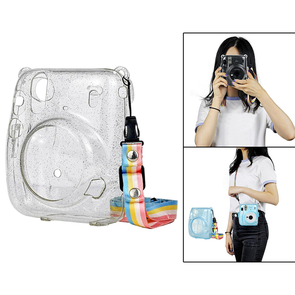Instax mini11用クリスタルボックス1個1x取り外し可能なレインボースタイルのネックストラップ