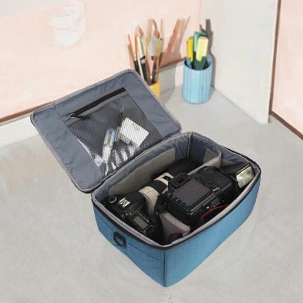 旅行写真家のためのトップハンドル写真バッグ付きカメラレンズハンドバッグブルー