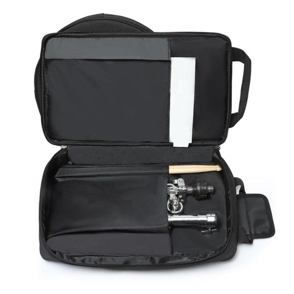 ドラムパッド.ドラムスティック.小さな譜面台.鍵.ブラケット.スコアなどを収納できます.