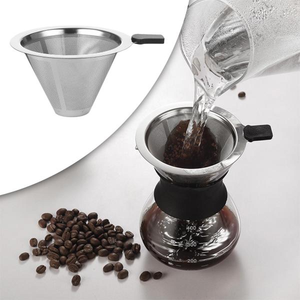 ステンレスフィルター.ファンネルスタイルのデザイン.2層フィルター.ファインフィルターはコーヒーパウダーを効果的にろ過し.味をより繊細にします.