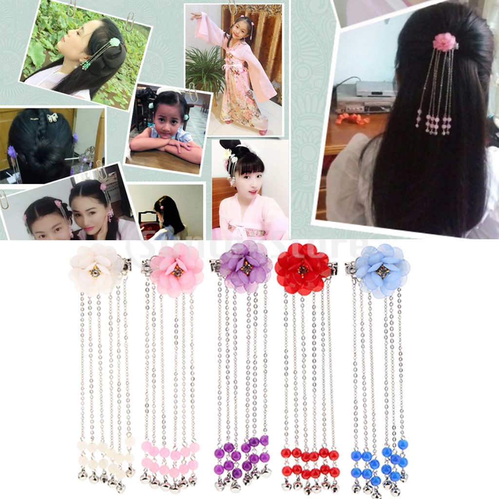 古代アリゲーターヘアピン中国のコスプレフラワータッセルヘアクリップ