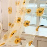 ひまわりは柔らかくエレガントなボイルカーテンを印刷し.自然な爽やかな雰囲気をあなたの部屋に提供します.ロッドポケットのデザイン.カーテンポールでハンギング準備.