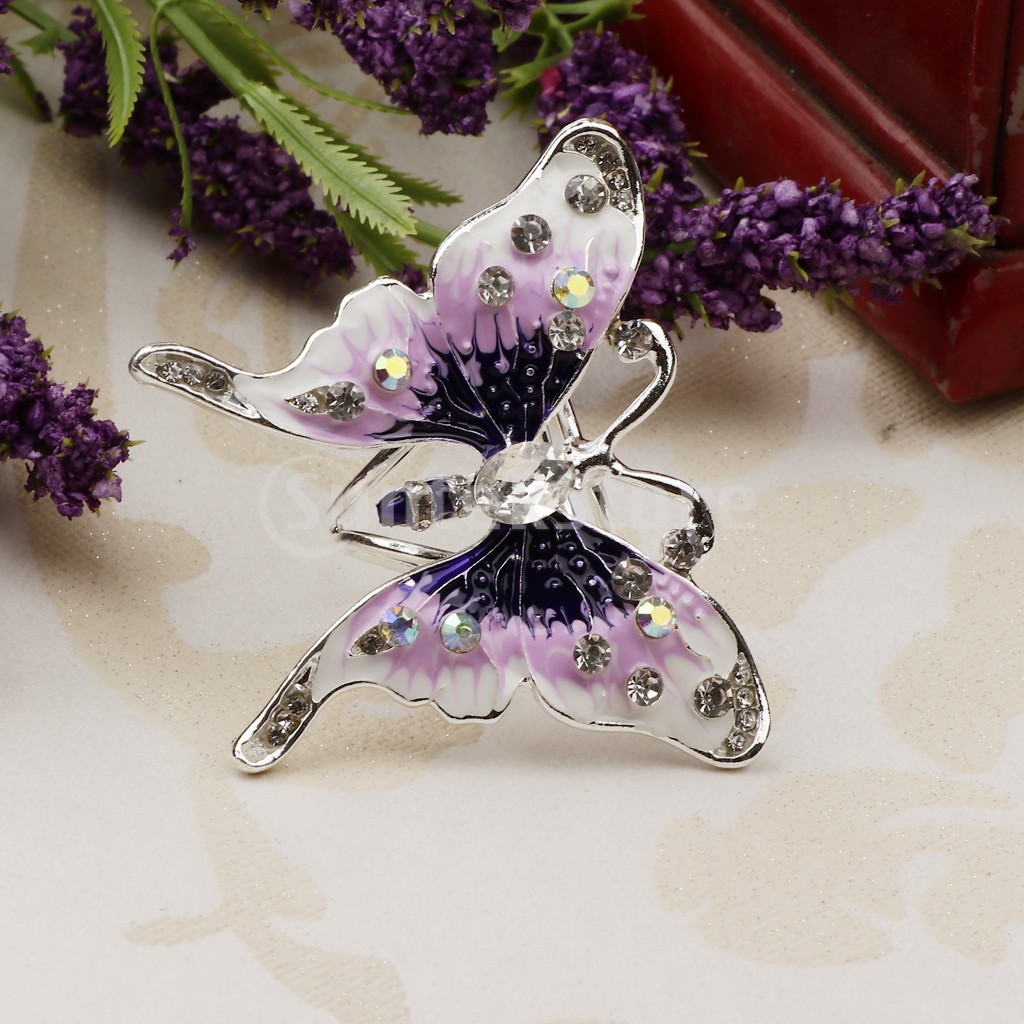 レディースファッションエナメルバタフライラインストーンスカーフリングバックルクリップ