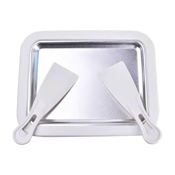 使い方は簡単: 使用前にパンを冷凍庫に 12 時間入れ.ヨーグルトまたは牛乳の混合物をトレイに置き.5 - 8 分間放置してから.スパチュラでアイスクリームを転がします.