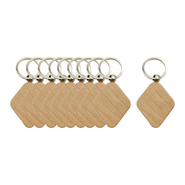 10個の空白の木製キーホルダー