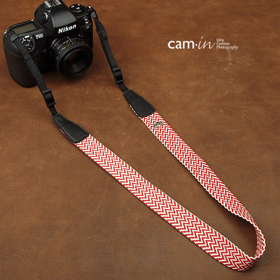 カメラストラップ コットン レッド/ホワイト 波 cam-in カムイン CAM8267A ストラップ おしゃれ 一眼レフ 斜めがけ ロープ 手首