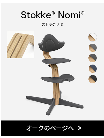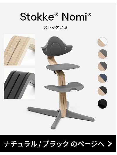 | ストッケ ノミ チェア ナチュラル / ブラック 子どもの自由な動きをサポートするイス ストッケ ノミ チェアは、アクセサリー(別売り)を使用する事で新生児から大人まで、生涯お使いいただけます。 調整に工具が要らないシームレスな設計と、人間工学に基づいたデザインが年齢を問わず快適な座り心地を演出します。 ピーター・オプスヴィックは、お子さま自身が本能的に座りやすいと感じる理想のポジションを見つけられることで食事に集中しやすくなり、家族が一緒に楽しい食卓を囲むことができるという、トリップトラップと同じ考え方に基づきノミ チェアをデザインしました。 ・考え抜かれた機能がお子さまの自由な動きを妨げず、安全で快適な座り心地 ・お子さまの成長に合わせて、座面・足のせ板の高さ・奥行きを工具なしで無段階に調節でき、アクセサリー(別売り)を使用する事で新生児から大人まで、生涯使えるハイチェア ・4.6kgと軽量で移動が簡単、床掃除がしやすいようにテーブルにもかけられる仕様 ・曲線美が美しい北欧デザイン ・後方への転倒防止キャスターを搭載。欧州委員会2019年度「Product safety Silver Award 2019」を受賞 |