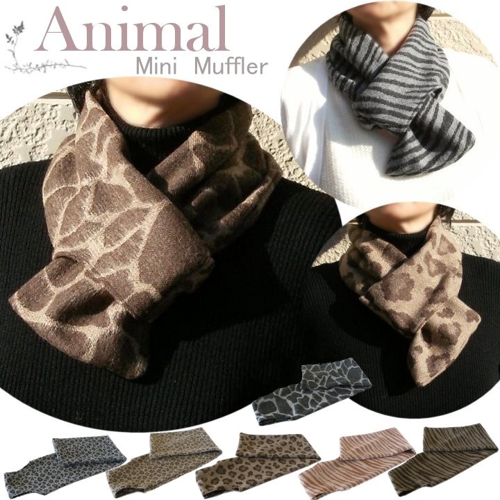 メール便送料無料 差し込みマフラー 防寒 保温 レディース メンズ ゼブラ柄 ヒョウ柄 ジラフ柄 秋冬 ギフト プレゼント 日本製【ミニマフラーアニマル柄】