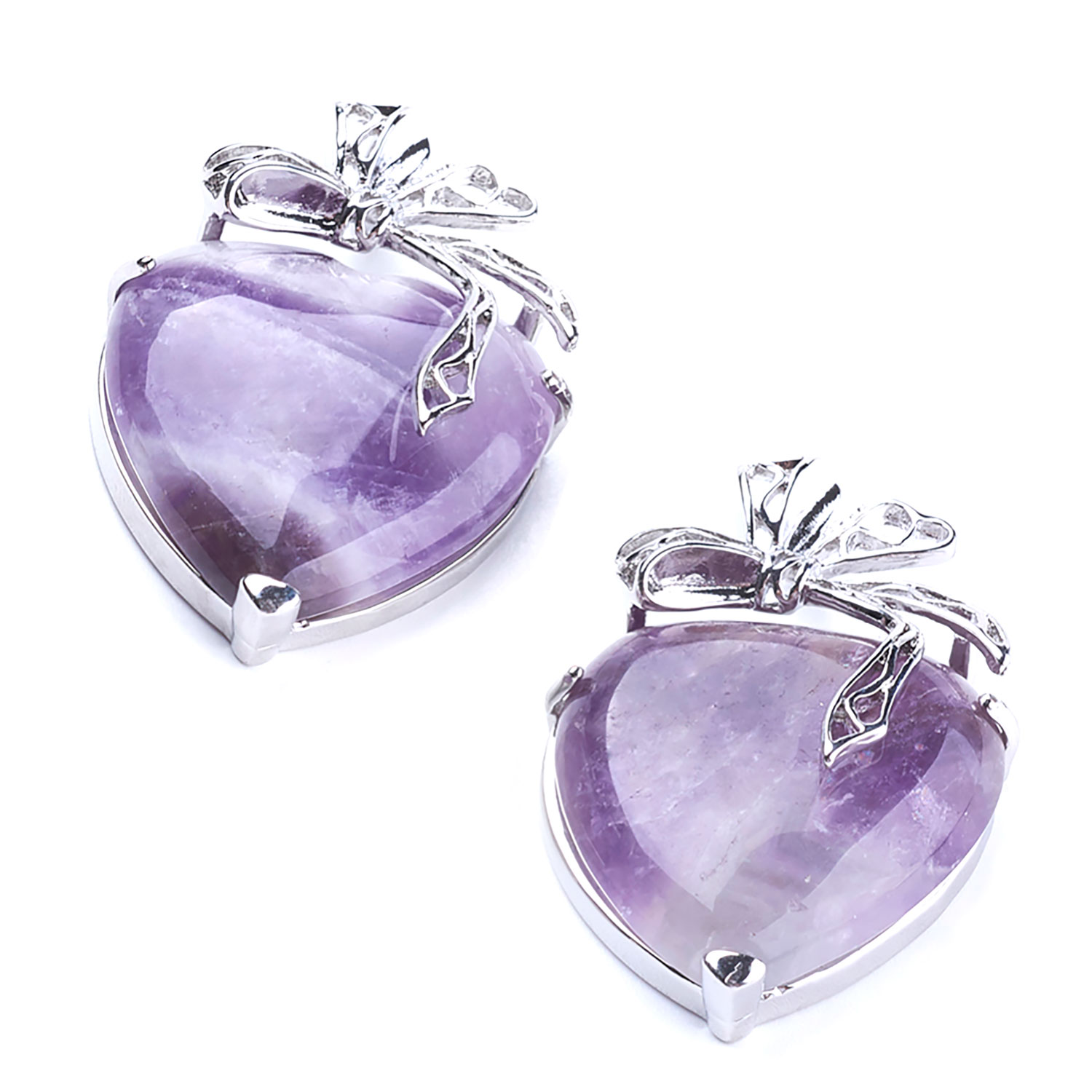 天然石 パワーストーン ペンダント リボン ハート アメジスト アクセサリー