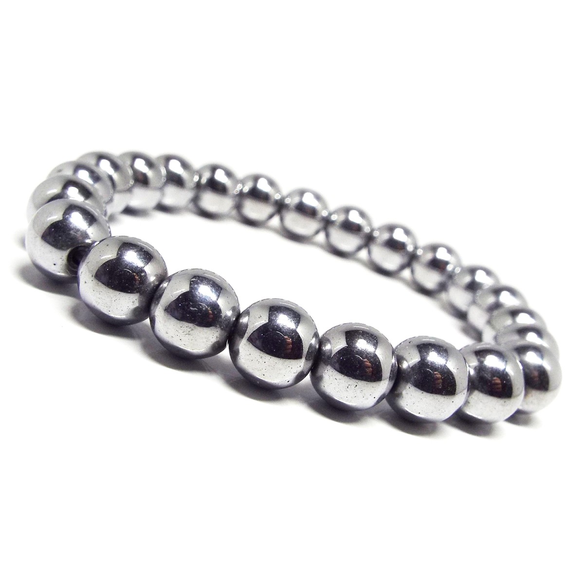 天然石 ブレスレット ヘマタイト シルバーカラー 磁気なし 約6mm パワーストーン アクセサリー 一連 数珠