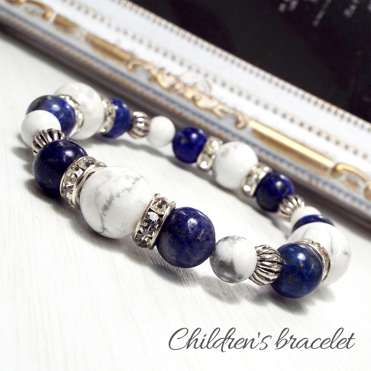 天然石 パワーストーン ブレスレット キッズ 子供 アクセサリー ホワイトターコイズ ラピスラズリ