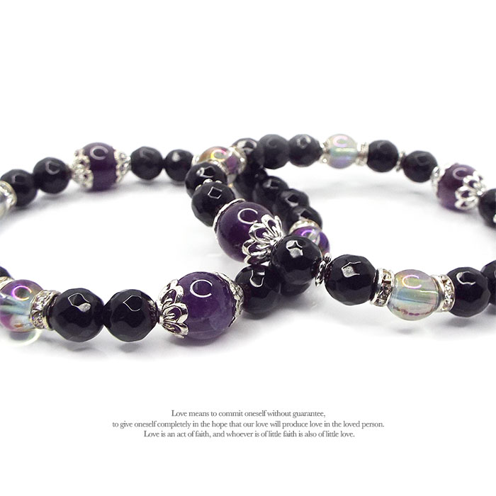 天然石 パワーストーン ブレスレット ペアセット アメジスト オニキス